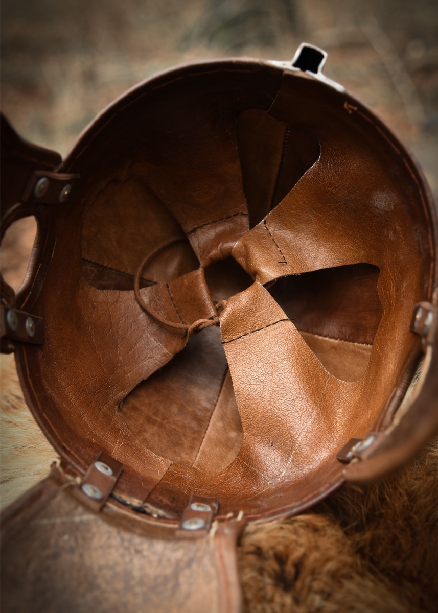 Med sit enkle, funktionelle udtryk og gode bærekomfort er denne romerske hjelm ideel til gengivelse af romerske soldater fra senantikken og passer perfekt ind i både militære og civile historiske sammenhænge.