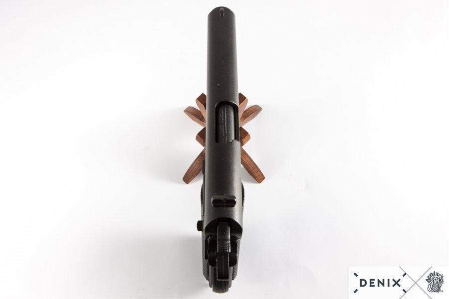 Denne Denix Colt M1911A1 replika pistol er en autentisk gengivelse af den klassiske .45 ACP militærpistol. Med sin fuldt demonterbare konstruktion og realistiske detaljer er den ideel som samler pistol, dekorationsvåben eller undervisningsmodel.