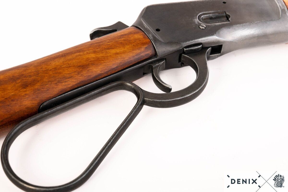 Denne detaljerede Denix replika er fremstillet i metal og træ og har en realistisk simuleret lade- og affyringsmekanisme. Det korte løb og pistol-lignende greb giver et særligt udtryk, som gør den til et populært valg blandt både samlere og western-entusiaster.