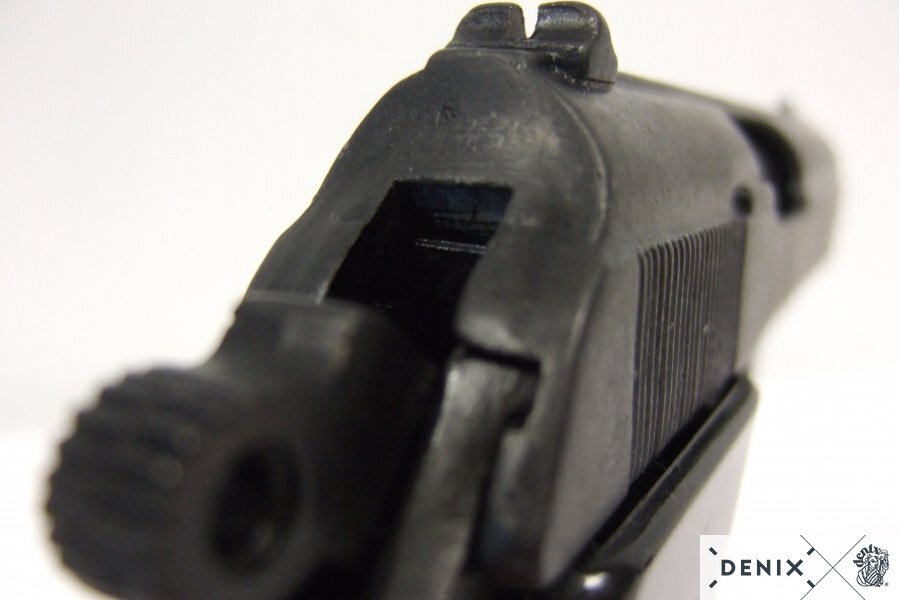Denne Denix PPK replika pistol er en autentisk gengivelse af en klassisk tysk halvautomatisk pistol. Med sit kompakte design og historiske udtryk er den ideel som samler pistol, dekorationsvåben eller rekvisit til film, teater og reenactment.