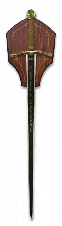 Dette Tole10 sværd leveres med en flot træstander, så det nemt kan udstilles og fremhæves som en del af din indretning. Med en vægt på 1660 gram får du en tung og imponerende model med stor tilstedeværelse.