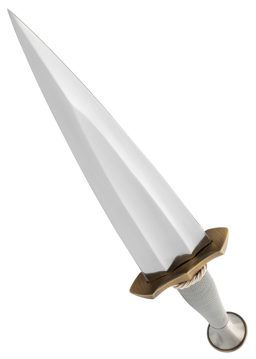 Boromir, søn af Denethor og medlem af Ringens Broderskab, var en modig kriger fra Gondor. Hans dolk afspejler hans styrke og ære og er et ikonisk våben fra filmserien. Denne autentiske replika dolk er fremstillet med stor præcision og respekt for detaljerne fra filmen.