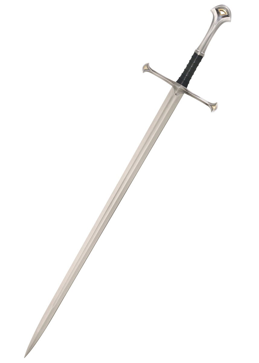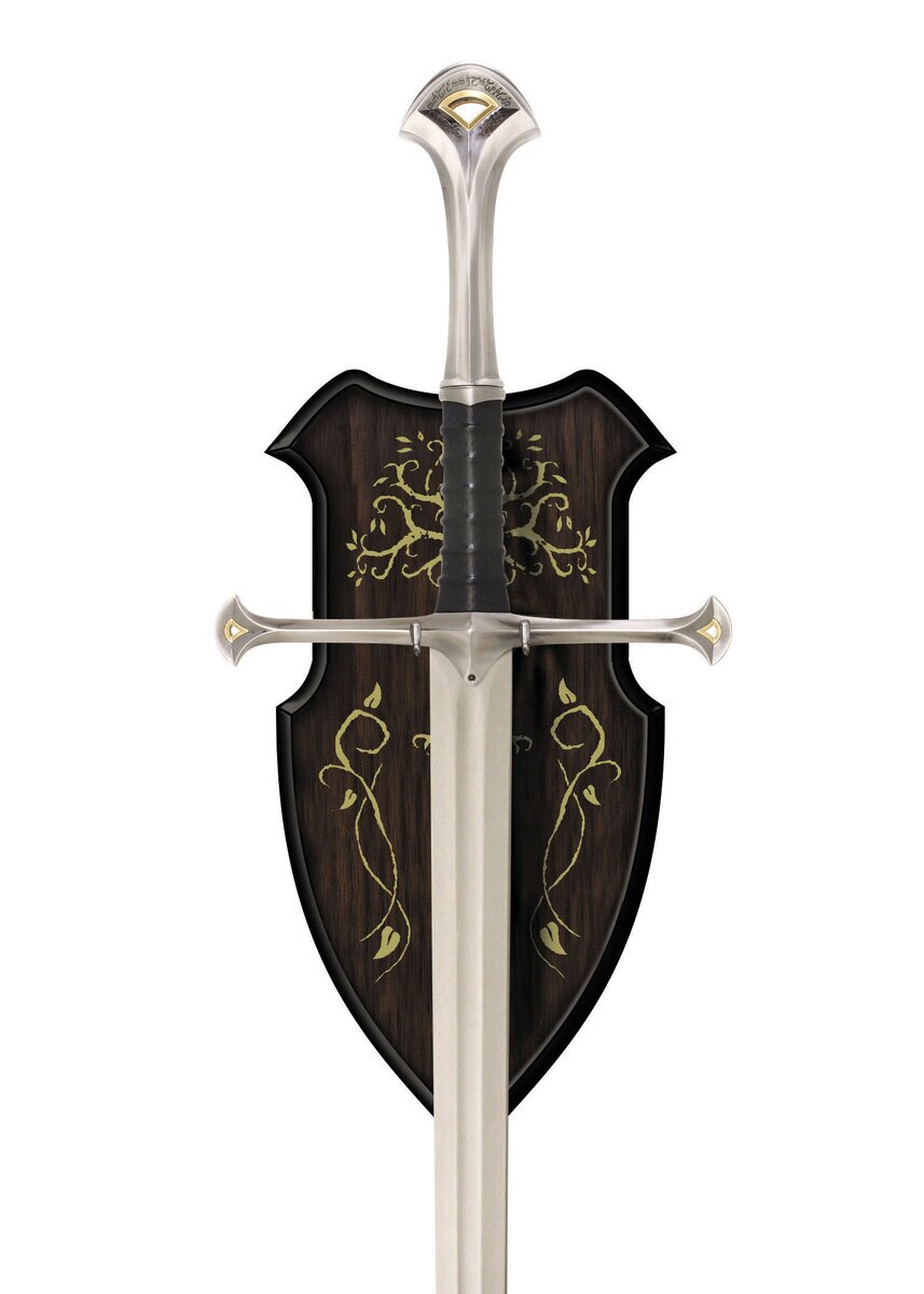 Pommel er dekoreret med elverruner i Sindarin, som fortæller sværdets historie og oprindelse. Sværdet leveres med en elegant træplade til vægmontering samt et certifikat for ægthed, hvilket gør det til et uundværligt samlerobjekt for fans af Ringenes Herre.