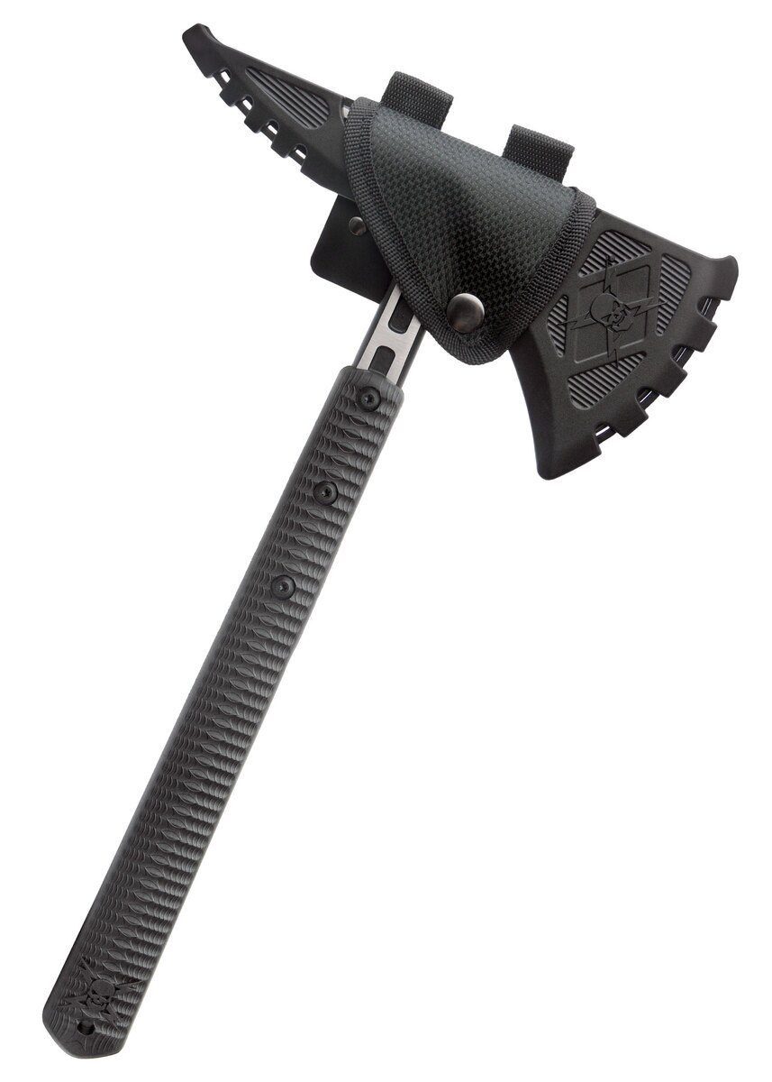 Denne M48 Liberator Tomahawk leveres med en stærk nylon- og plastskede med bæltestrop, hvilket gør den nem at transportere og klar til brug i enhver situation.