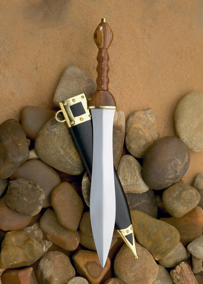 Windlass, Roman Pugio er en klassisk romersk dolk replika med klinge i 1055 højkulstofstål. Den brede pugio-klinge og det autentiske trægreb giver dolken et historisk romersk udtryk. Perfekt som samlerobjekt, reenactment rekvisit eller dekorativt romersk våben.