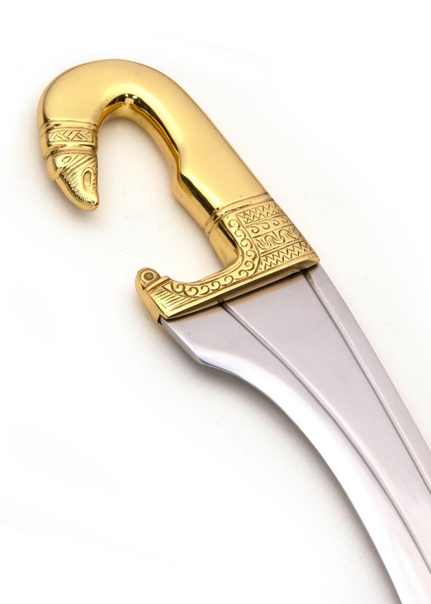 Windlass, Falcata Sværd er en autentisk celt-iberisk sværd replika med karakteristisk buet klinge i 1065 højkulstofstål. Det solide messinghåndtag og den medfølgende læderskede gør dette falcata sværd til et imponerende samlerobjekt inspireret af de frygtede våben fra romertiden.