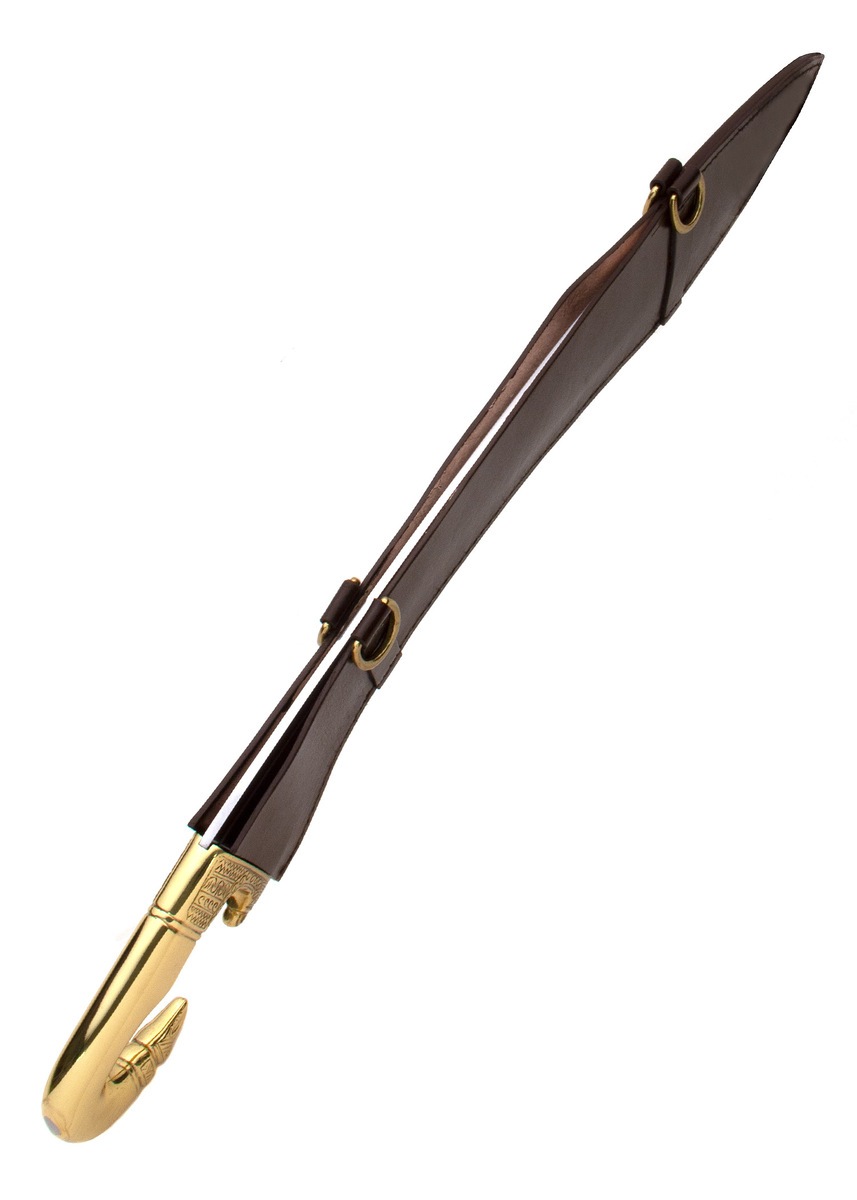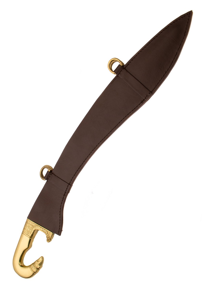 Windlass, Falcata Sværd er en imponerende replika af det berømte celt-iberiske falcata sværd, et af de mest frygtede våben i den antikke verden. Dette historiske falcata sværd var kendt for sin karakteristiske indadbuede klinge, der leverede ekstremt kraftige hug og kunne trænge gennem både skjolde og hjelme.