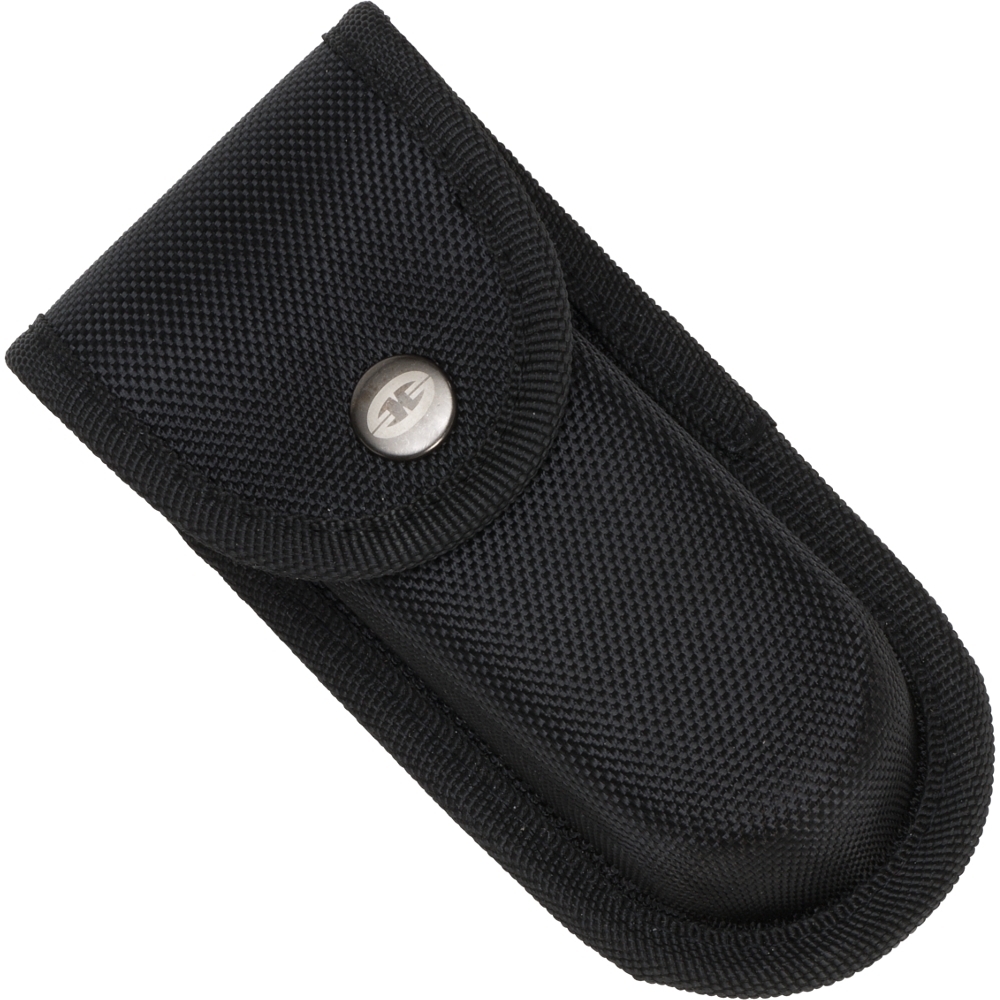 Kniven leveres med en robust nylonetui, der sikrer sikker transport og opbevaring.