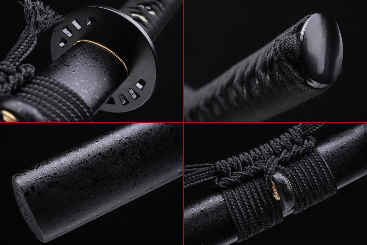 - Fuchi/Kashira: Sortmalet kulstofstål